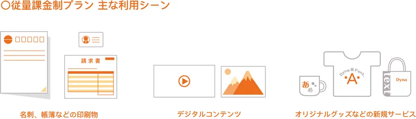「従量課金制プラン」の主な利用シーンとして、名刺やハガキ、カレンダー、アルバムなど紙媒体として出力するケースや、動画・画像合成のエンジンなどのデジタルコンテンツ、Tシャツ・マグカップ等のオリジナルグッズ作成サービスや年賀状作成サービスなどがあります。