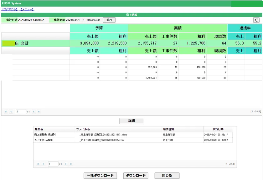 ・帳票は毎深夜に自動集計しますからダウンロードして印刷するだけです。