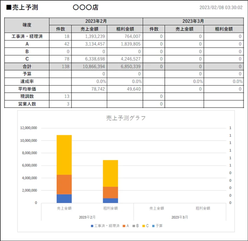 ・売上予測値はまだ売上確定していない見積段階の情報を確度別に集計したものです。