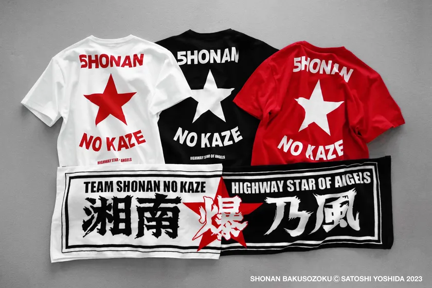 メジャーデビュー20周年を迎えた「湘南乃風」は、吉田聡による暴走族漫画『湘南爆走族』とのコラボレーションアイテムを、2023年4月1日(土)よりスタートする全国のツアー会場と、TVAM store内「風屋」にて販売開始します。また、オフィシャルファンクラブ風乃軍団限定のアイテムも販売いたします。