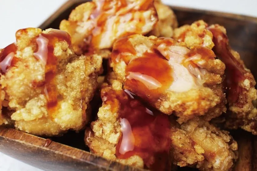 鳥取県産「大山どり」と梨酢を使用した甘酸っぱい唐揚げ。