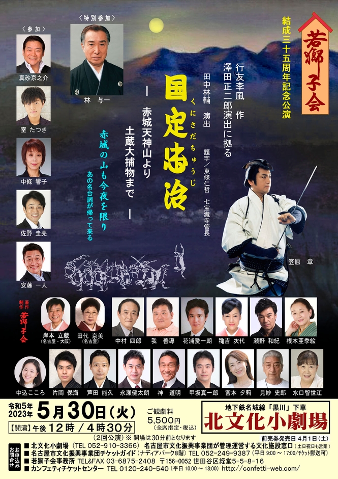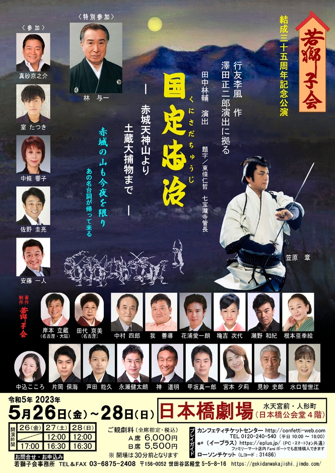 一般社団法人若獅子会(代表:笠原 章)主催、若獅子結成35周年記念公演『国定忠治』が3都市にて上演されます。