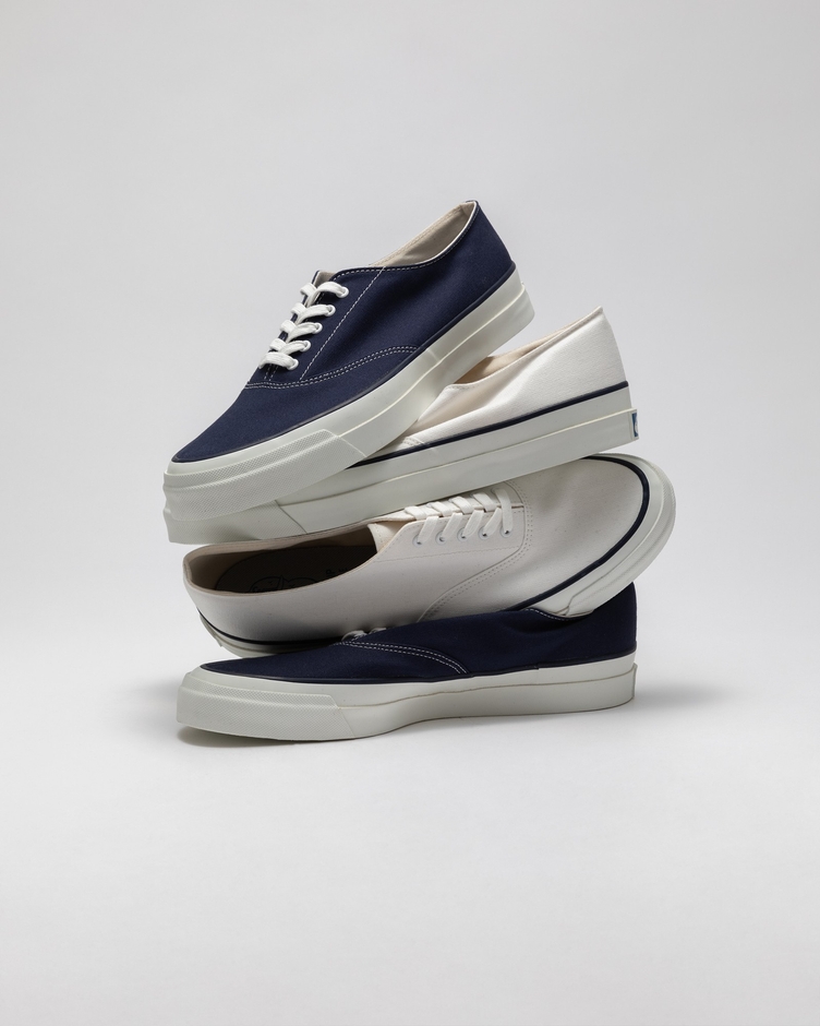 プレッピースタイルの象徴であった〈TOP SIDER (トップサイダー)〉。デッキシューズの派生として登場したキャンバスオックスフォードを日本製で復刻しました。日本国内では希少となったヴァルカナイズ製法で、熟練の技術によって、70年代の木型をはじめヒールパッチやボックスなどを再現。当時のクラシックなシェイプとディテールを蘇らせました。シンプルでありながら時代を超えて愛され続ける名作。ホワイトとネイビーの2色展開です。