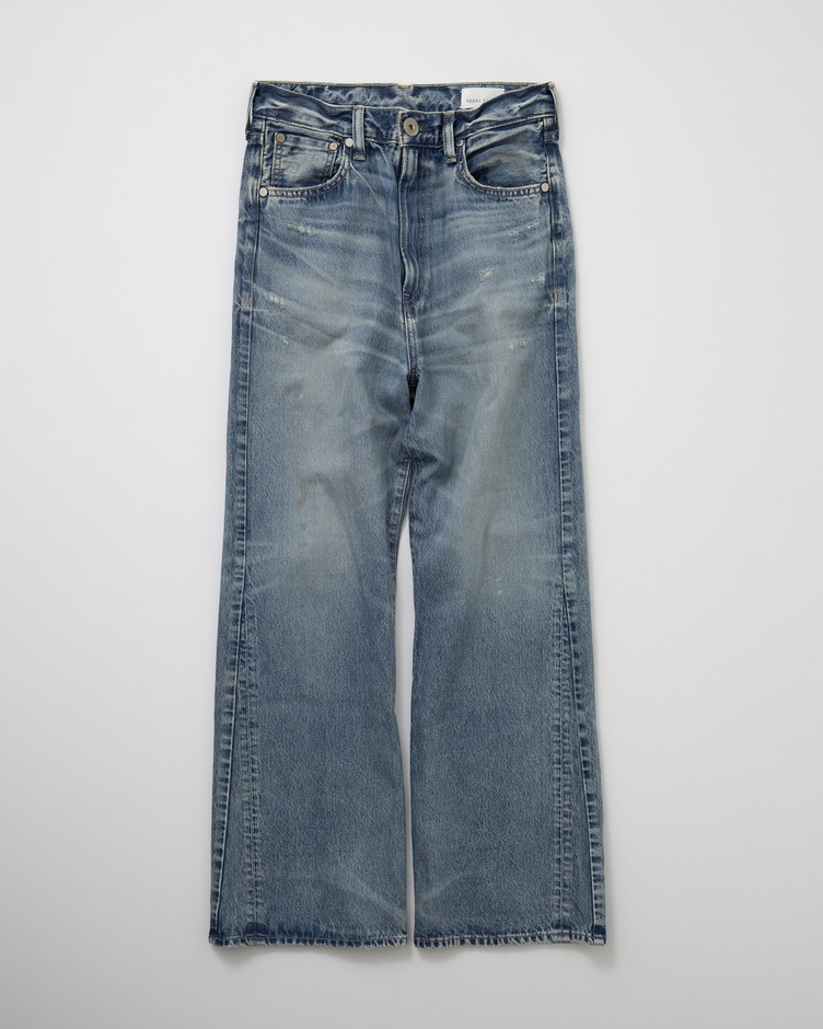 1979年のSHIPS WOMEN誕生の際にインスパイアされた映画や女優たちのエッセンスを纏う、特別なデニムが登場。ジェーン・バーキンが愛用していたようなヴィンテージデニムをイメージして、ダメージや汚し加工を施し、サイドに切り替えを加えたフレアシルエット。今なお色褪せないファッションアイコンのノンシャランとしたアティテュードと、白Tシャツにブルーデニムの代名詞的スタイルが浮かびます。懐かしさと現代的なスタイルが融合した、脚のラインを美しく引き立たせるこだわりのデニムです。