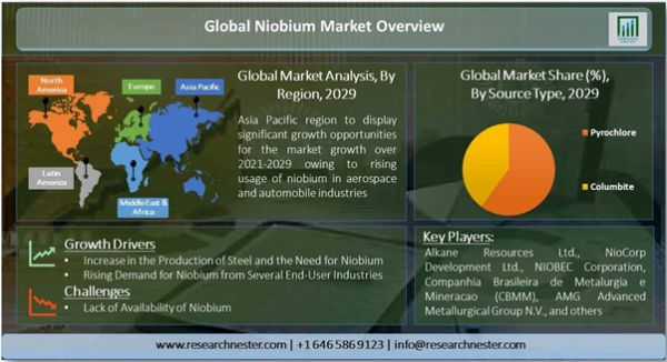 ニオブ市場ーソースタイプ別(コルンブ石とパイロクロア);製品タイプ別(ニオブ金属、ニオブ酸化物、ニオブ合金);アプリケーションタイプ別;エンドユーザー産業別-世界の需要分析および機会の見通し2029年