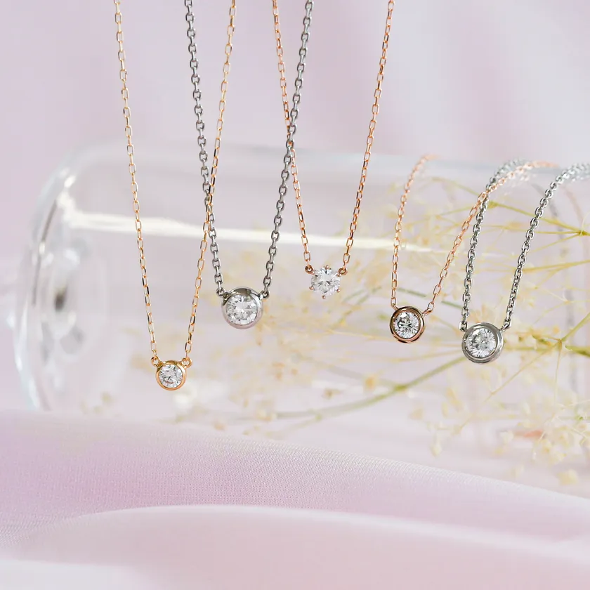 対象商品はスタッフが自信を持っておすすめする一粒ダイヤネックレス5デザイン