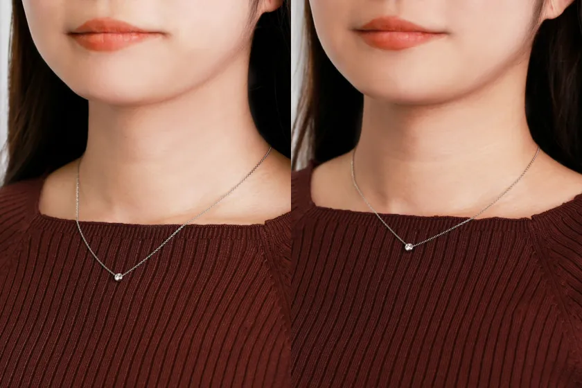 ネックレスの長さ調節に便利なアジャスターチェーン(左:アジャスターチェーン3cm使用)