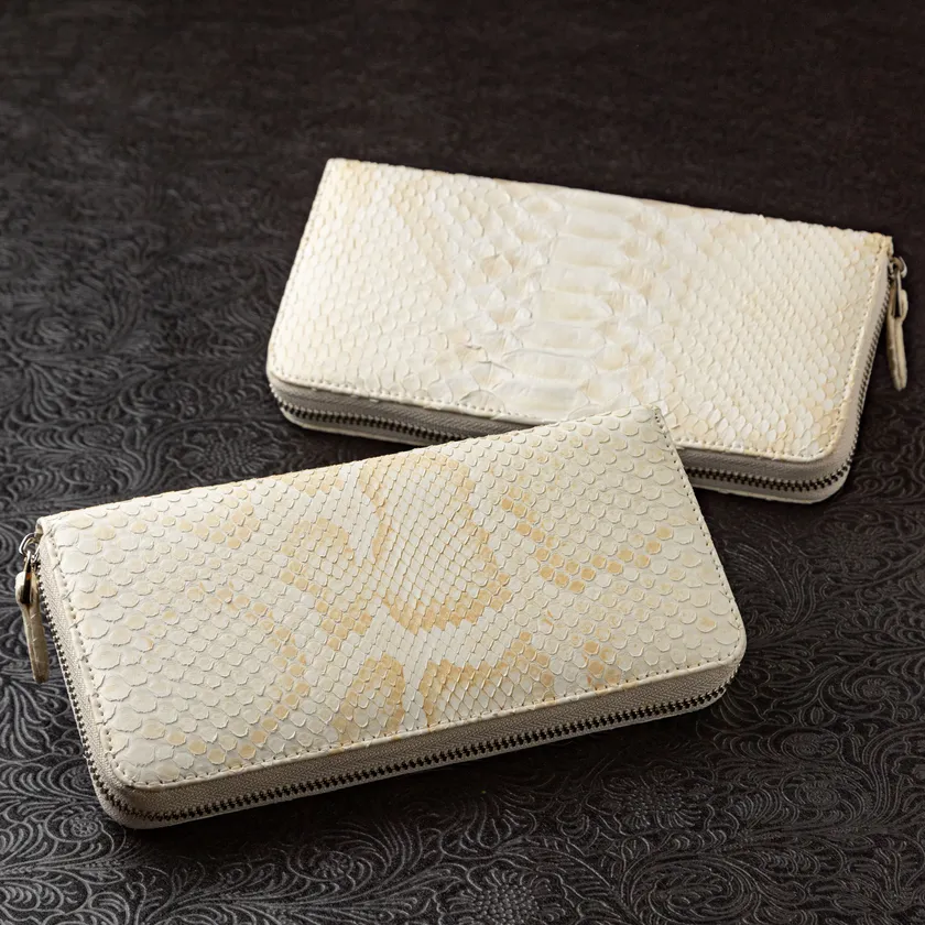 2023年3月30日から「Makuake(マクアケ)」を通して販売を開始したホワイトパイソン長財布。開始24時間で136万円以上(3月31日17時)の売上です。こちらの商品は元々工場が作ったミスオーダーから生まれた商品です。工場側が間違って作ってしまったところお客様に見せたところ「買いたい!」と言われ即決で販売。製品化したものです。