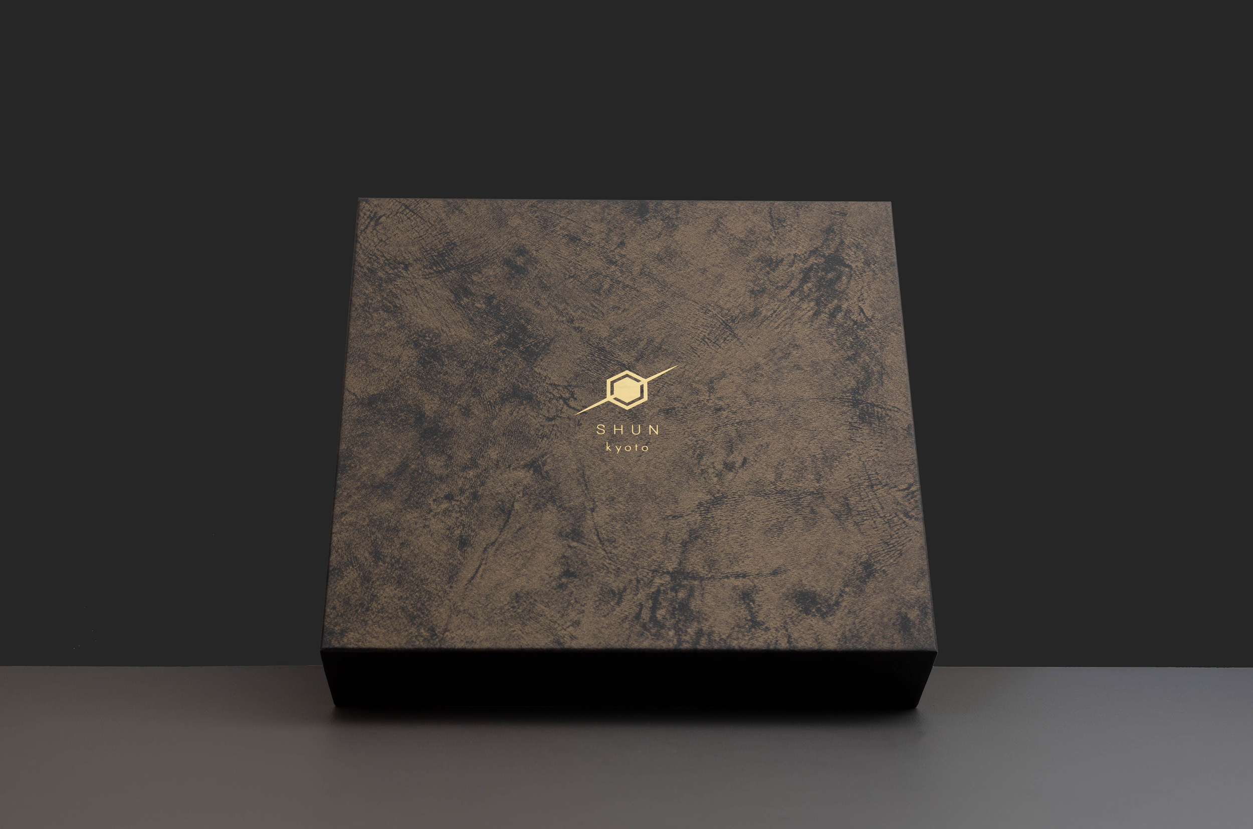 『SHUN(シュン)』のセットボックスは、技術力の高い製函工場で作られた特製貼り箱と京都の風呂敷メーカー「山田繊維」の風呂敷を用いた心づくしのギフトセットとなっております。
