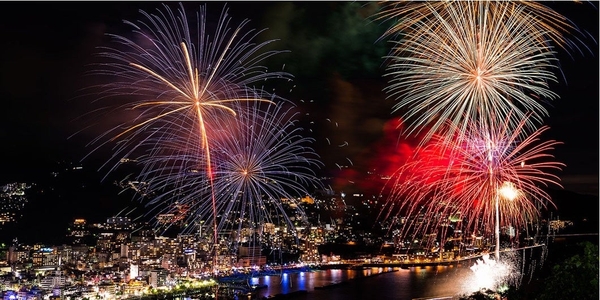 熱海海上花火大会の魅力は絢爛豪華な打ち上げの様子ももちろんですが、すり鉢状の熱海の地形がもたらす反響音の大迫力もその1つです。