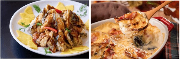右:千葉県のさつまいもの生産量は全国で第3位。旬を迎えたさつまいもを使ったチーズたっぷりのグラタンは女性やお子様が大好きな味です。