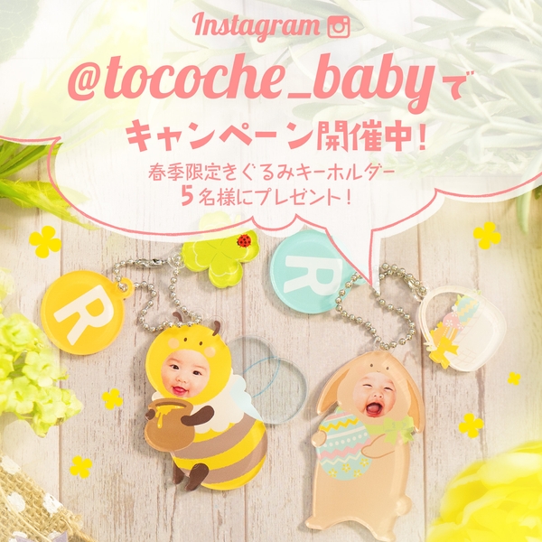 現在tocoche(トコシェ)のInstagramアカウント(@tocoche_baby)においてきぐるみキーホルダープレゼントキャンペーンを開催中です。