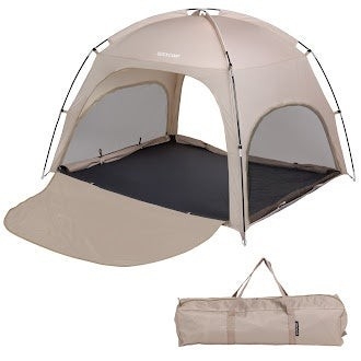 「何本ものポールを組み立てる」といった複雑な工程は一切ありません。ポールをスリーブにスッと通すだけのシンプルな構造なので、初心者でも迷わず数分で設営完了。ポップアップ式のように「畳み方が分からず収納袋に入らない」といったイライラもありません。設営も撤収もスムーズだから、遊びの時間を最大限に楽しめます。