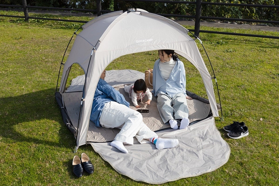 株式会社YOCABITO(本社 : 岐阜県岐阜市、代表 : 菅野祐介)が展開する外遊びブランドQUICKCAMP(クイックキャンプ)より、徒歩や自転車でも持ち運べる「コンパクトシェード」の販売を