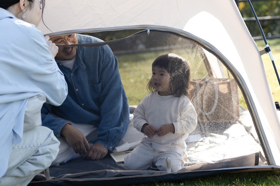 遮熱性に優れ、真夏の厳しい日光を遮る「ブラックコーティング」は、UV カット率99%以上、UPF50+と最高水準のスペック。一方で、あえて日差しを適度に取り込める「PUコーティング」は、肌寒い季節も暖かく過ごせ、通年で活躍します。夏の外遊び重視か、四季を通じて公園で使うか。自分のスタイルに最適な一張りが選べます。