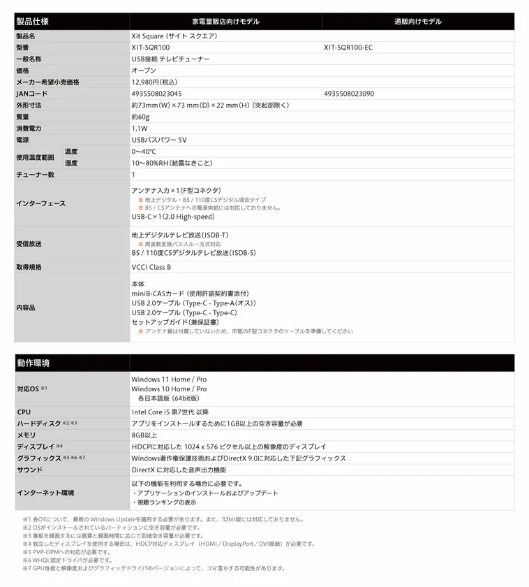 [新製品] テレビの見方が圧倒的に変わる! 手のひらサイズでタイパも上がる Windows対応テレビチューナー Xit Square 「XIT-SQR100」を4/14(金)より販売開始!