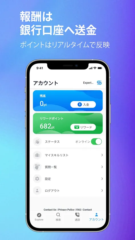 『Experienshare』は、Experiencer(スキル登録者)とユーザーが直接声やビデオ通話でコミュニケーションをとることができ、スピーディにユーザーの学びに繋げる通話アプリです。使い方は簡単。『Experienshare』アプリをダウンロードした後、会員登録を済ませ、必要な場合にはポイントを購入します。ユーザーは相談したい内容にマッチするExperiencer(スキル登録者)を探し、『Experienshare』のチャット機能や音声通話・ビデオ通話で相談することが可能です。チャットのみの利用と、最初の1分の通話は無料。その後はExperiencerが設定した通話料に応じてユーザーはポイントで報酬を支払います。Experiencerは報酬をリワードポイントとして受け取ることができます。2021年11月からベトナム、インド、インドネシア、フィリピン、オーストラリア、ニュージーランドなどアジア・オセアニア地域の合計10カ国で展開。日本では2022年8月にサービスを開始しました。これまで大手メーカーでの新規事業立ち上げ経験者、心理学や脳科学をベースにした幅広い知識を持つSNSインフルエンサーなど、ビジネスからプライベートシーンまで幅広いジャンルで相談が可能なExperiencerが登録しています。