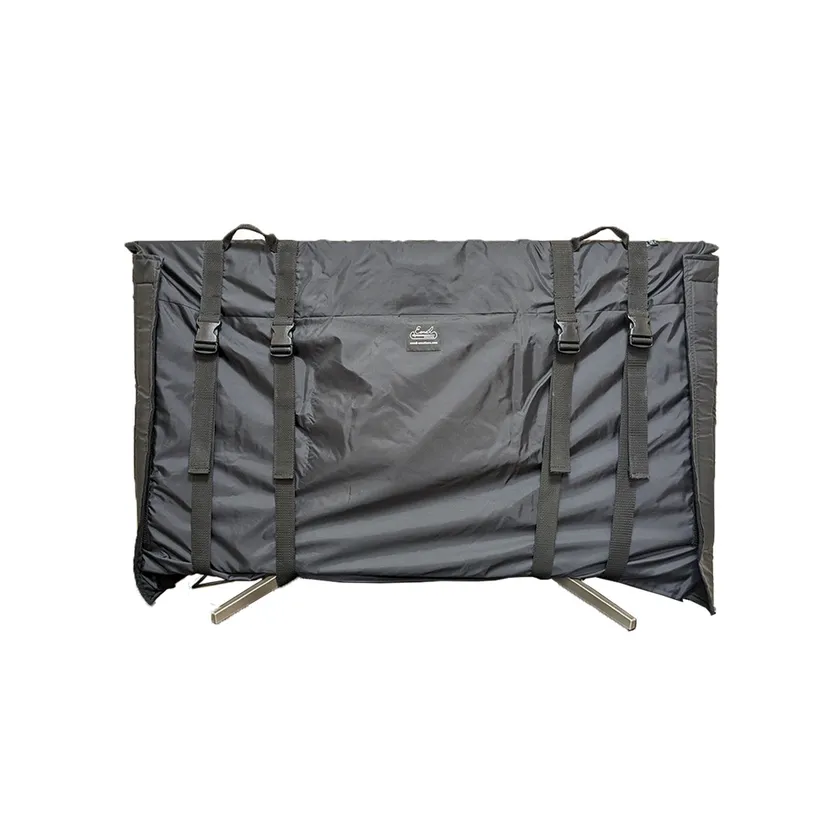 通常主流なサイズは24インチや27インチですが、映像配信現場では大型モニターがなくてはならない存在。出演者も大型モニターを見ながら番組を進めます。実は持ち込むことも多い大型モニターを安全に運ぶために、4本のベルトで支えています。4本のベルトとサイドの面ファスナーでモニターをしっかり包むので安定感もあり、一人でも持ち運びが可能です。段ボールの出し入れや毛布に包むよりも取り扱いが簡単な大型モニター専用ケースです。管理や保管にも最適です。