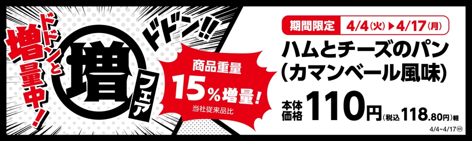 お値段そのまま‼期間限定でドドン‼と増量 増量フェア 4月4日(火)より開始