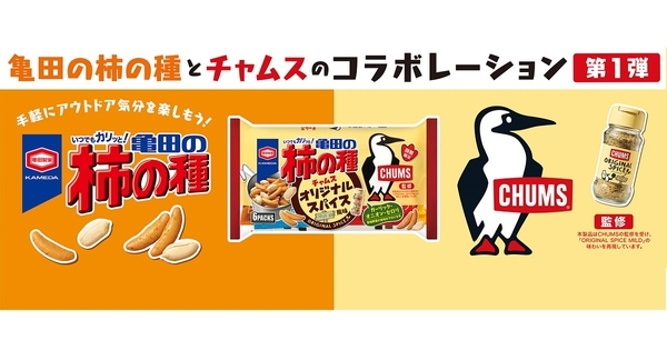 亀田製菓株式会社(本社:新潟県新潟市、代表取締役社長 COO:髙木 政紀)は、アウトドアカジュアルブランド「CHUMS(チャムス)」との異業種コラボレーション商品第1弾として、『164g 亀田の柿の種 チャムスオリジナルスパイス』を、4月17日(月)から5月末までの期間限定で発売します。