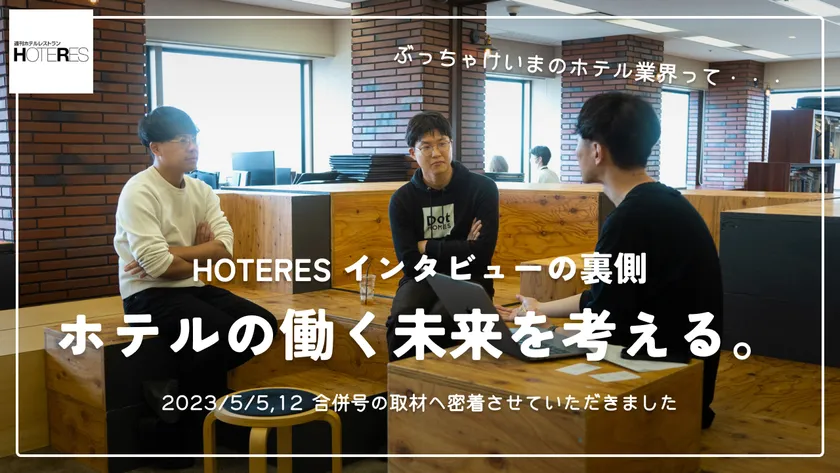 Next HOTELの正式リリースに伴い、業界紙HOTERES(週刊ホテルレストラン)の2023年5月5日・12日合併号へ特集記事が掲載予定です。その取材の様子に密着した動画を限定公開しております。取材テーマは、「ホテルの働く未来を考える。~持続可能なホテル経営と運営~」。ホテル業界全体の課題となっている“人手不足”をどう解決していくべきか等を副編集長の武田 雅樹氏と熱く語っております。