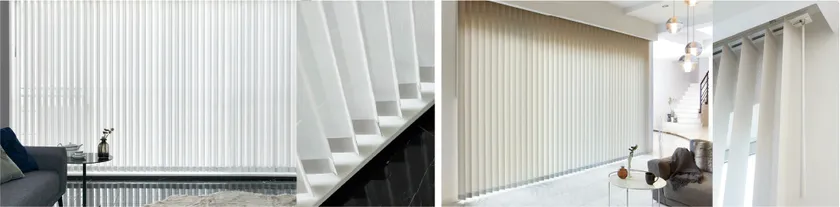 不透明ルーバーとシースルーのセンターレースルーバーを交互に組み合わせた人気のセンターレーススタイルに、ウエイトを包み込む縫製のミニマルウエイト仕様が新発売。すっきりとした意匠で、連続性や縦ラインの美しさが特長のバーチカルブラインドのスマートさを引き立てます。