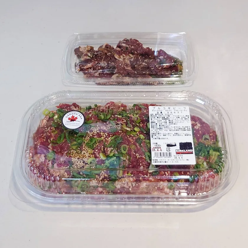 プルコギビーフのビフォーアフター(小分けの小分け価格:税込883円)