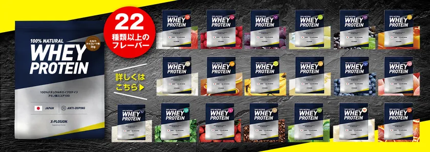 「X-PLOSION(エクスプロージョン)」プロテインは、現役アスリートが「世界一の高品質」と「特別な価格」をこだわり抜いて開発。一般的な商品より圧倒的に低価格で、味も品質も評価されている商品です。力を振り絞って進む一歩一歩を栄養面からバックアップします。