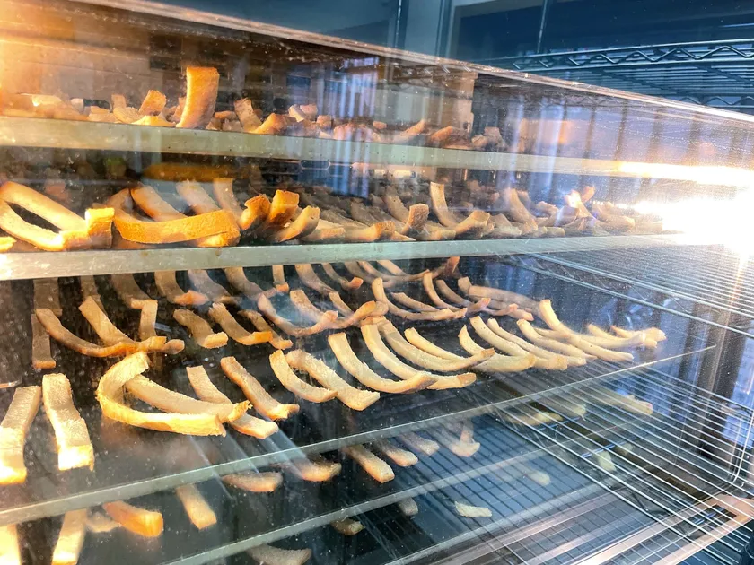 サンドイッチ製造で発生し活用しきれない“パンの耳”を台東区の福祉事業所の知的障害者の方が回収し乾燥加工しラスクに。蔵前WHITEの原料として使用します。