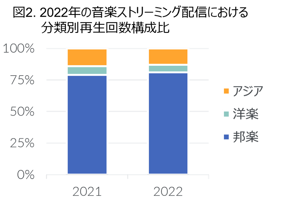 ・前年に続き邦楽が市場をけん引し、分類別再生回数の構成比では8割超え