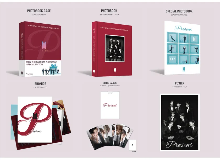 2020年、2021年に続き今年で3冊目となる『2022 THE FACT BTS PHOTOBOOK SPECIAL EDITION』は、今年でデビュー10周年を迎えるBTSがファンの熱い情熱と愛に応えるべく、真心を込めて制作されました。「Present(プレゼント)」のタイトルのもと、Passion、Remember、Emotion、Soul、Energy、Nice、Timelessをテーマに、普段は見られないBTSの特別な姿を盛り込んでいます。