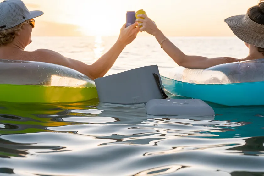 「FOAM フォーム」は水に浮くので、蓋をトレーがわりに水中で冷たい飲み物を楽しめます。