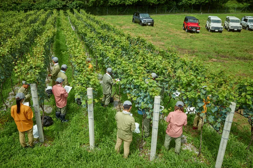 2012年からは、高齢化により継続困難となった地元・大野町の農地をワイン用のぶどう畑として再生しシニア世代の生きがいを造るプロジェクト、『ORI WINE PROJECT』も始まりました。この取り組みによる緑化は、CO2の吸収源対策としても大きな役割を果たしています。