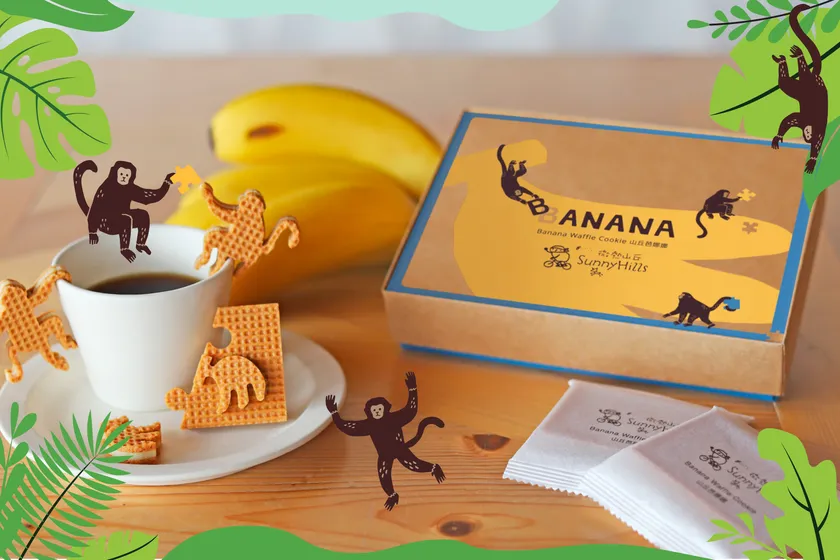 台湾産のフルーツを使ったサニーヒルズの新商品として、台湾でも注目を集めているこの商品。深い甘みとほのかな酸味、豊かな香りが特徴的な山岳バナナの美味しさをぎゅっと凝縮した驚くほど濃厚なフィリングと、愉快で可愛らしいパズルのような型抜きクッキーが発売当初より好評を博し、まだ発売から日が浅いにも関わらずリピーターが続々と増えています。