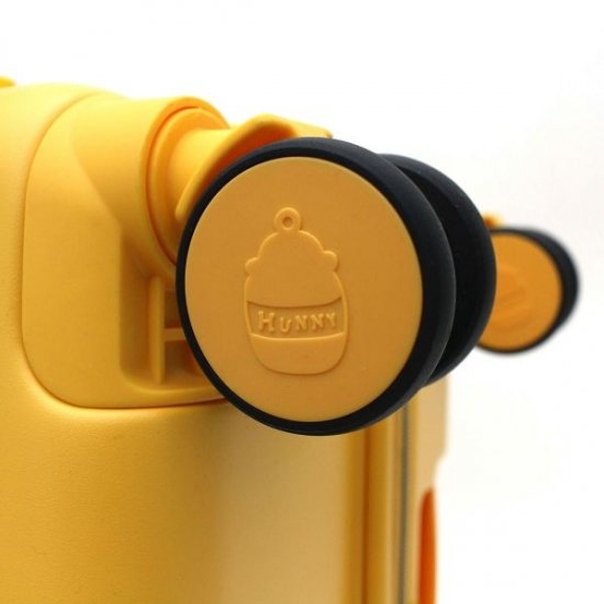 シンプルイエローのボディにプーさんのエンボス加工がオトナカワイイ♪はちみつ探しの旅に行きたくなるプーさんスーツケース。