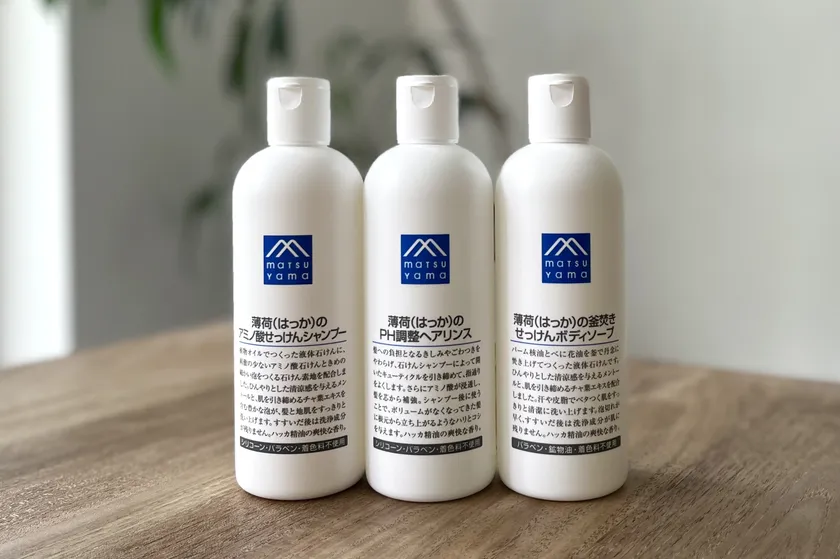 夏のベタつく頭皮こそ、石けんシャンプーで清潔にしてほしい。2023年の夏に向けて、松山油脂は、Mマークシリーズの定番「アミノ酸せっけんシャンプー」にメントールと薄荷精油で清涼感を加えた、「薄荷(はっか)のアミノ酸せっけんシャンプー」をつくりました。頭皮をひんやりさせながら夏の汗や過剰な皮脂、ベタつきやかゆみを取り除きます。