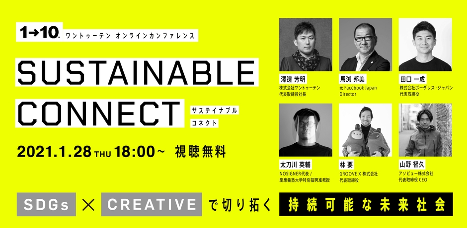 近未来クリエイティブ集団『ワントゥーテン』主催 オンラインカンファレンス 「SUSTAINABLE CONNECT」 1月28日開催決定、本日より無料事前登録スタート!