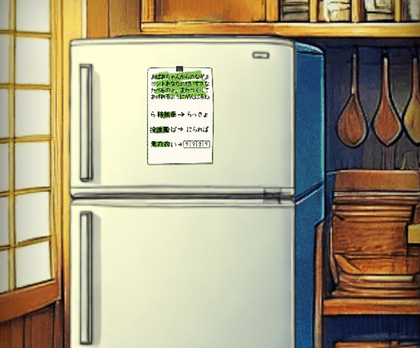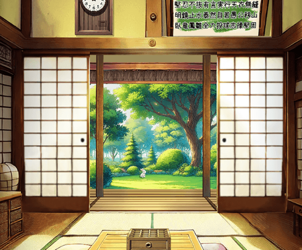 障子に描かれたサインやカレンダーに貼られた毛糸の切れ端、冷蔵庫に貼られた主人公の好物にまつわる謎や、桐の木箱パズルの謎など手作り感あふれる謎を解き、うさぎが大好きだったおばあちゃんの思い出のカケラを集めよう。