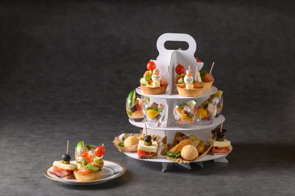 アフタヌーンティースタンドをクリスマスツリーに見立て、松阪極み豚と伊勢どりのパテ・ド・カンパーニュをはじめ、ローストビーフのオープンサンドや、スモークサーモンを使ったお料理など、煌びやかに仕上げられたセイボリーを盛付けし、見るだけでも心躍る贅沢な味わいのオードブルでクリスマスを演出いたします。