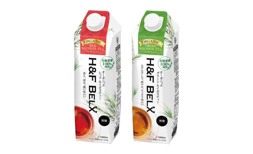 株式会社エルビー(本社:埼玉県蓮田市、代表取締役社長:畑中 晴彦)は、『H&F BELX オーガニックレッドルイボスティー』『H&F BELX オーガニックグリーンルイボスティー』(キャップ付き紙パック1000ml)を4月25日(火)より全国のスーパーマーケットなど(沖縄県を除く)で発売いたします。