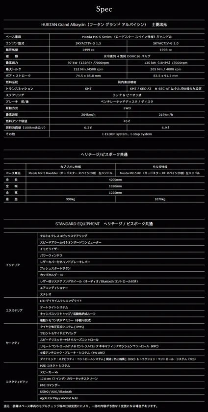 ベース車両Mazda MX-5(マツダロードスター スペイン仕様、左ハンドル)