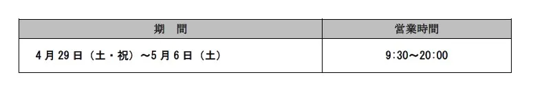 【実施期間】 5月3日(水・祝)~6日(土)の4日間