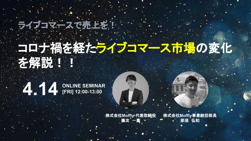 【株式会社Moffly】無料オンラインセミナー第三弾 「コロナ禍を経たライブコマース市場の変化を解説!!」を 4月14日(金)12:00~13:00にて開催