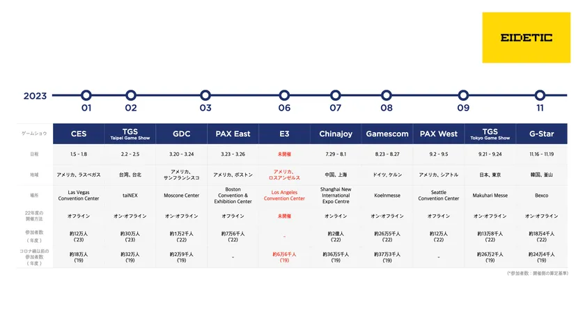 アイデティックマーケティング株式会社(EIDETIC Marketing、以下 アイデティック)は、3大ゲームショウの一つ「ゲームズコム」の開催に向けて、オンライングローバルゲームショウセミナーを開催(予定)します。