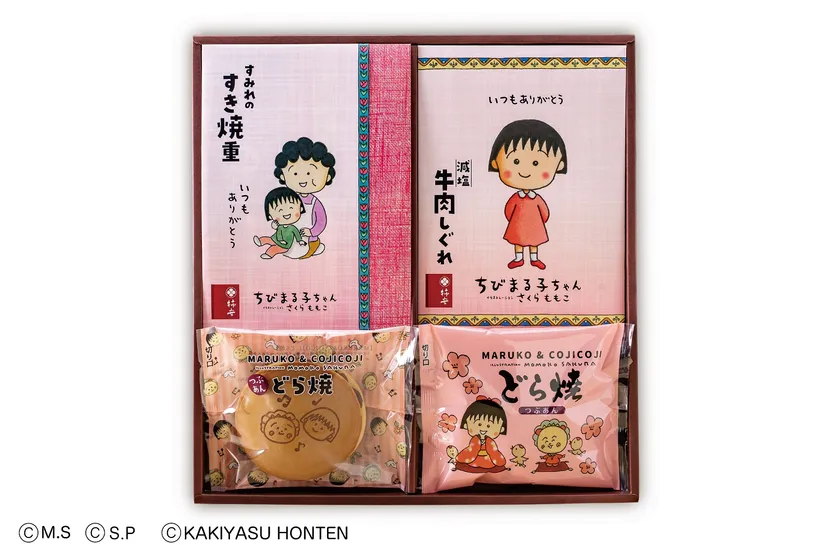 ※画像掲載の際、『どら焼入りギフトセット』は「(C)さくらプロダクション」「(C)さくらももこ」「(C)KAKIYASU HONTEN」、『ギフトセット』は「(C)さくらプロダクション」「(C)KAKIYASU HONTEN」をご記載下さい。
