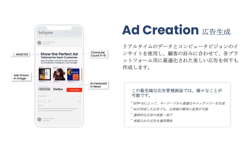 Omneky JapanのAIプラットフォームは、デジタル広告を最適化するための強力なソリューションとして、下記の特徴があります。