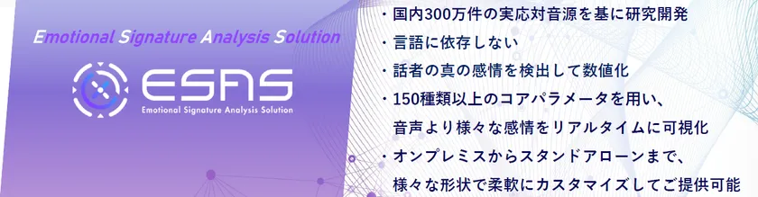 音声感情解析ESASサービスの詳細はCENTRIC株式会社グループ会社、音声感情解析専門会社ESジャパン株式会社ホームページよりご確認ください。