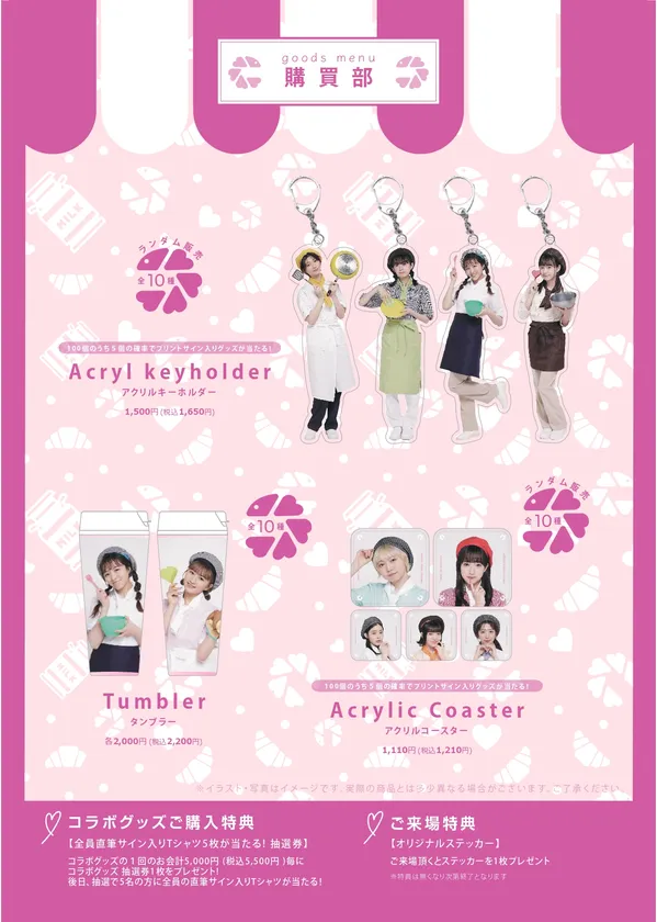 さらにフードとデザートにはメンバー肖像がプリントされたアクリルピックがランダムで付属。(メニュー写真参照)