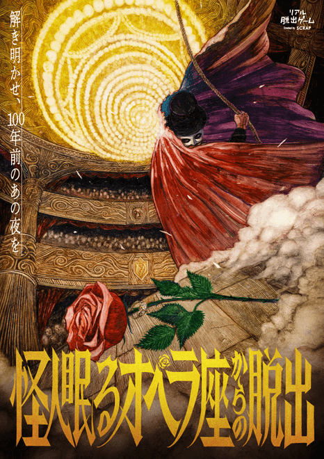 『怪人眠るオペラ座からの脱出』は、小説『オペラ座の怪人』に着想を得たSCRAPのオリジナルストーリー。100年前に死んだといわれる怪人の遺書を手がかりに謎を解き、劇場の真実を解き明かしていきます。ゲーム内では演劇パートがあり、演劇も楽しみながら謎解きができるリアル脱出ゲームとなっております。