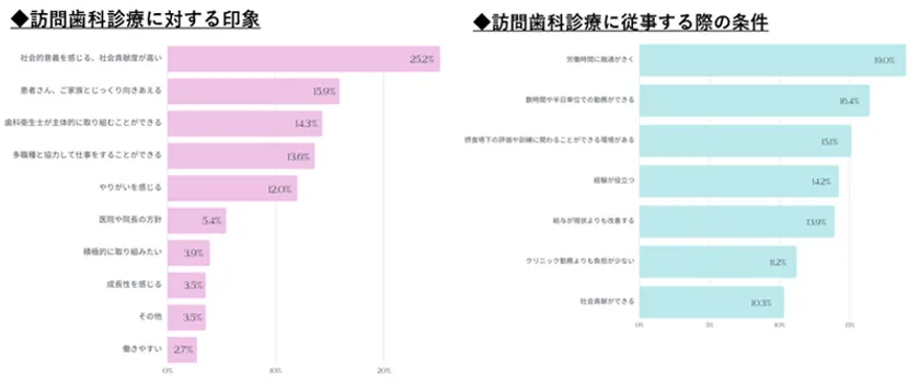 ・一方で、訪問歯科診療に従事する条件としては「労働時間の柔軟性」が求められていて、その点がスタッフ採用の戦略ポイントになるのではないかと思われます。